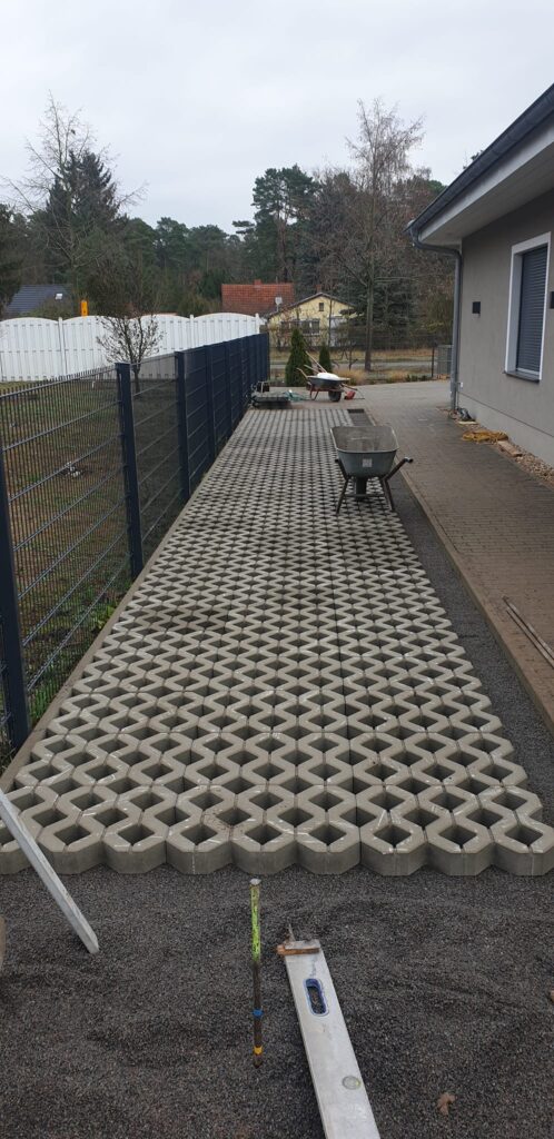 - Projektowanie i układanie nawierzchni z kostki brukowej o różnych kształtach i wzorach.